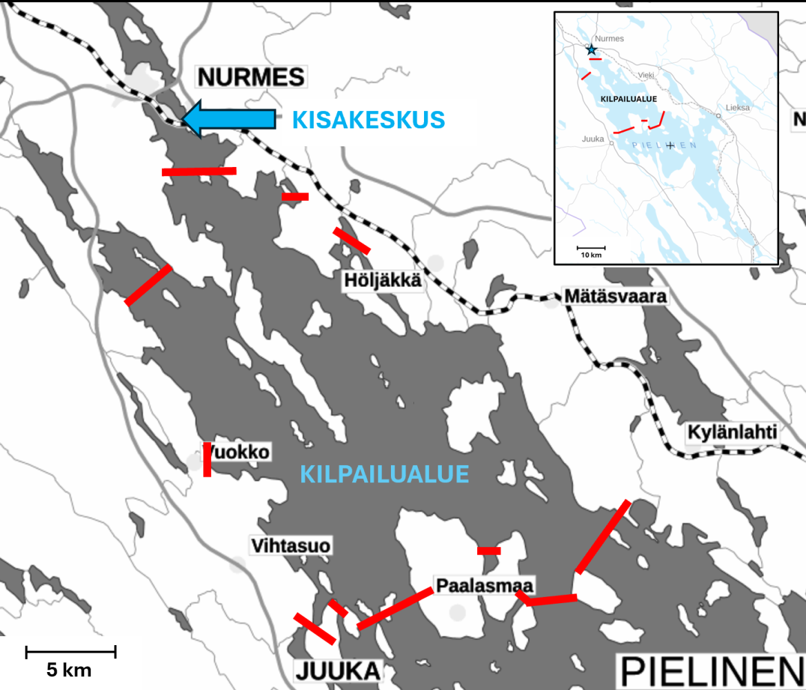 Kilpailualue on Pielisen pohjoisosa oheisen kilpailukartan mukaisesti. Tarkempi kilpailualueen kartta julkaistaan piakkoin.